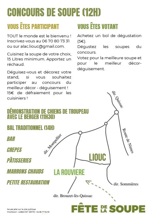 L’Association Liouc Animation Culture (ALAC) vous invite à la 11e Fête de la Soupe de Liouc :